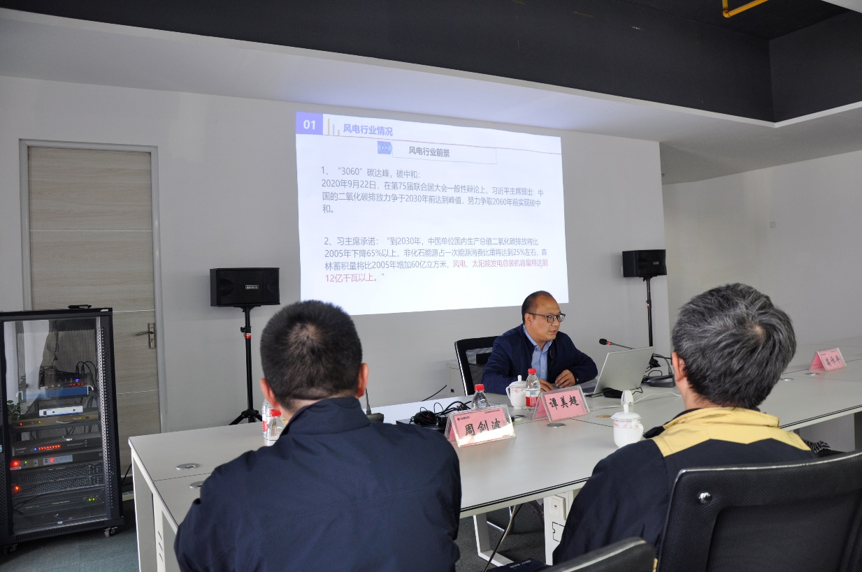 譚美超主任作了《風(fēng)力發(fā)電交流》技術(shù)講座,主要包括風(fēng)電行業(yè)情況、風(fēng)機基礎(chǔ)、風(fēng)機塔筒、風(fēng)力發(fā)電土建研究方向、風(fēng)力發(fā)電開發(fā)建設(shè)流程等,使全體員工對風(fēng)力發(fā)電有了更多的了解。