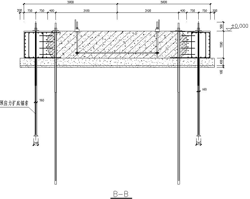 結(jié)合專家意?及相關(guān)技術(shù)資料并根據(jù)現(xiàn)場實際情況,對?機基礎(chǔ)進?加固處理。?先對原?機基礎(chǔ)采取加?截?法進?加固,然后在基礎(chǔ)擴?區(qū)域增加18根巖?預(yù)應(yīng)?錨索進?加固。預(yù)應(yīng)?錨索底部采?擴孔?鎖錨固技術(shù)。