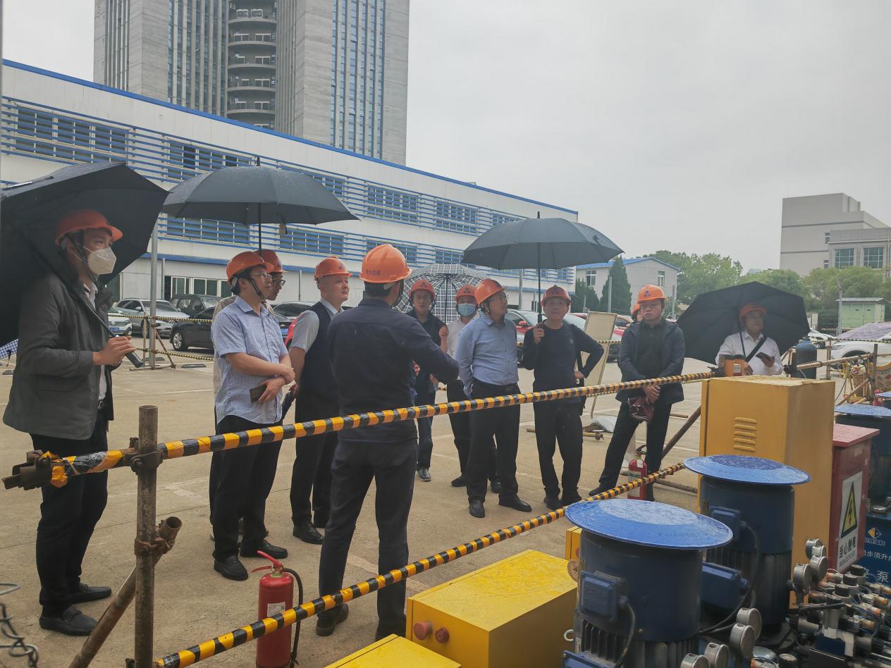 在巨成鋼滑道群控同步頂升工程試驗(yàn)項(xiàng)目現(xiàn)場,研究院院長助理周志勇對(duì)鋼滑道群控同步頂升試驗(yàn)的背景和目的進(jìn)行了介紹,對(duì)該技術(shù)的安全性、高效性、經(jīng)濟(jì)性等特點(diǎn)進(jìn)行說明,雙方在應(yīng)用場景方面進(jìn)行了探討和交流。